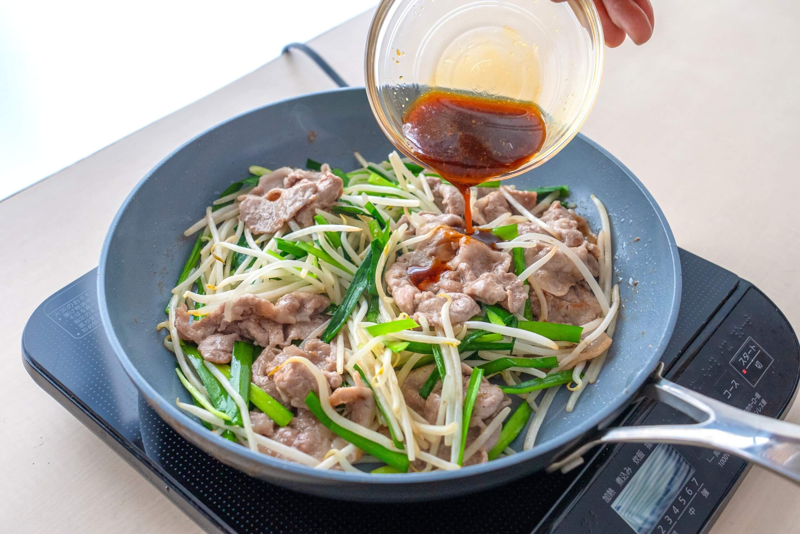 今日のレシピは・・・「豚ニラもやしのスタミナ炒め」
