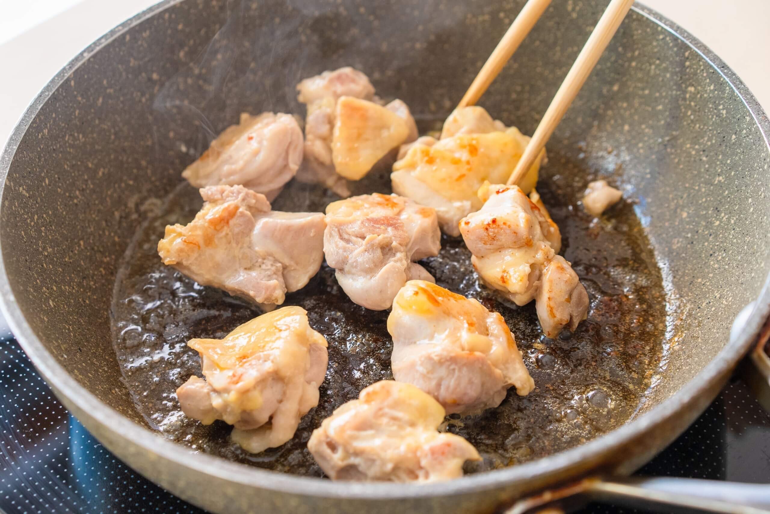 鍋にバターを中火で熱し、鶏肉を皮目を下にして入れ、焼き色がつくまで焼く。しめじ、玉ねぎ、白菜を加え、弱火で蓋をし、野菜のかさが減ってきたら炒め合わせる。