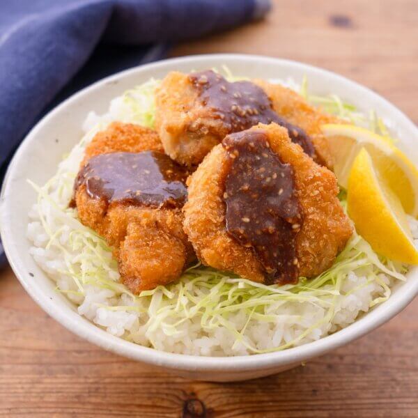 今日のレシピは・・・「ひとくちごまソースカツ丼」