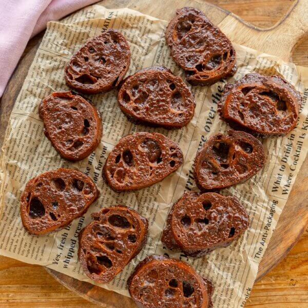 ケーキクーラーなどに取り出し、粗熱を取る。カリッと固まってくるまで置いておく(冷蔵庫に入れて1時間ほど冷やしても)。お好みの器などにのせる。