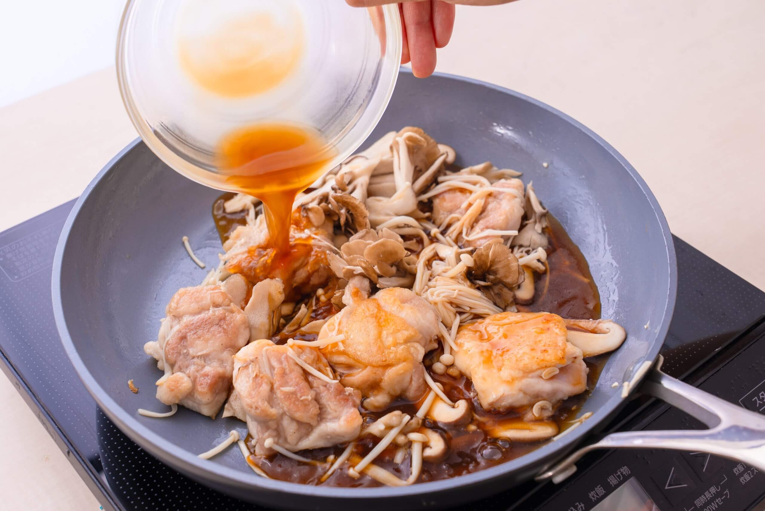 【A】をもう一度混ぜてから加え、中火でとろみがつくまで煮からめる。