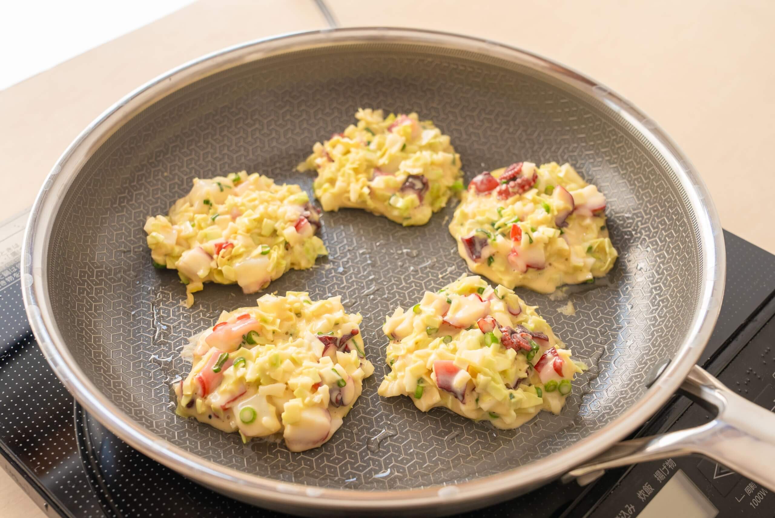たこ焼き器がなくても、フライパンで小さめサイズに焼くだけでOK!