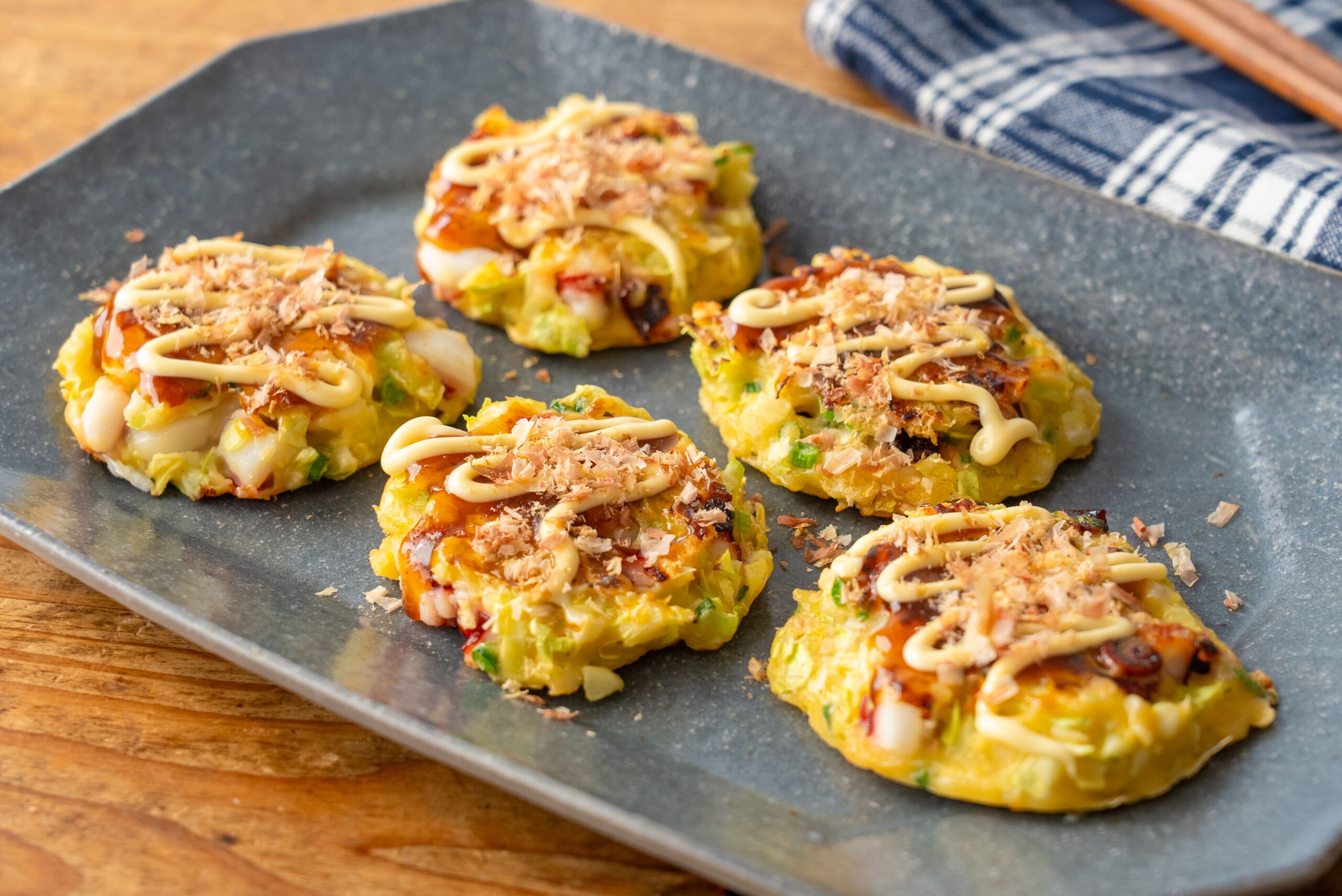 角切りにしたたこの食感と、たっぷりキャベツの甘みが楽しめます。