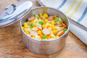 おにぎりにも◎。フライパン不要!彩りも栄養もばっちりのカレーピラフ弁当をご紹介しています^^